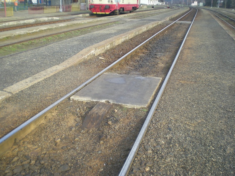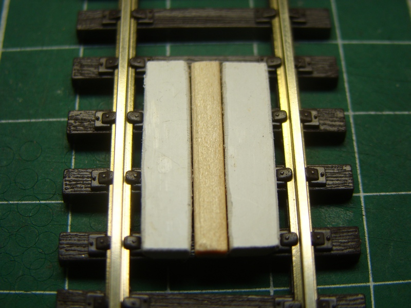 Pokusně vložený přechod mezi koleje. Celková šířka je 13 mm což by při rozchodu 16,5 mm snad nemělo zavazet.