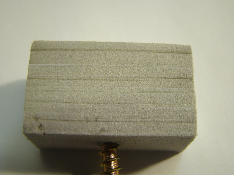 Styrodur jsem nařezal zalamovacím nožem a vysmirkoval do požadovaného tvaru. Následně jsem do něj vtláčel kousek dřevěného a plastového hranolku abych docílil že beton byl vylétý do šalování (bednění).