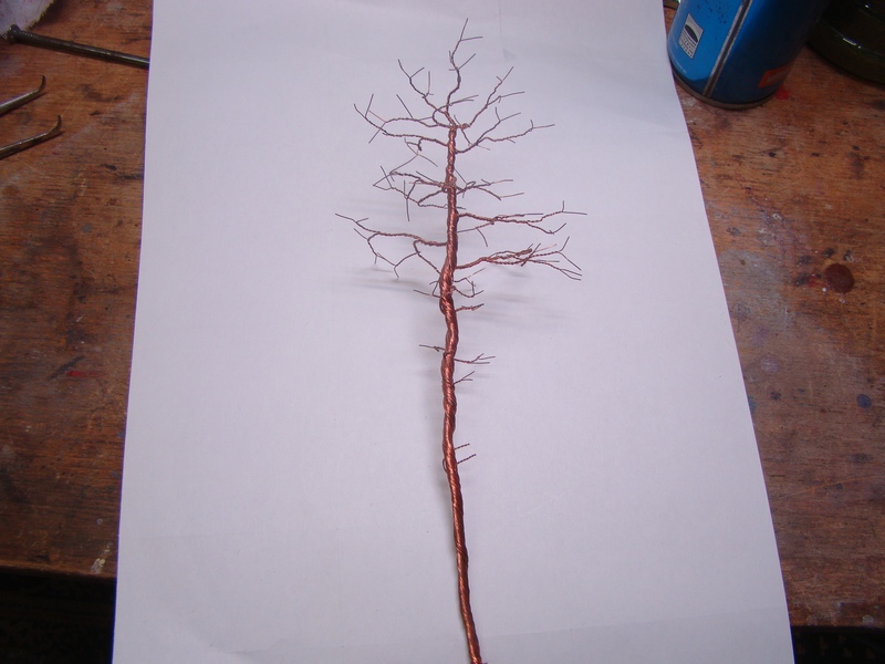 Borovici jsem se pokusil vytvořit pletením koruny z drátů které jsem získal oholením měděných vodičů dle postupu prezentovaného ZDE.