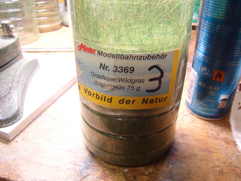 Kostru jsem připojil na flokovací zařízení a polyfiber jsem nastříkal lakem na vlasy. Pak jsem flokoval travou 4 mm.