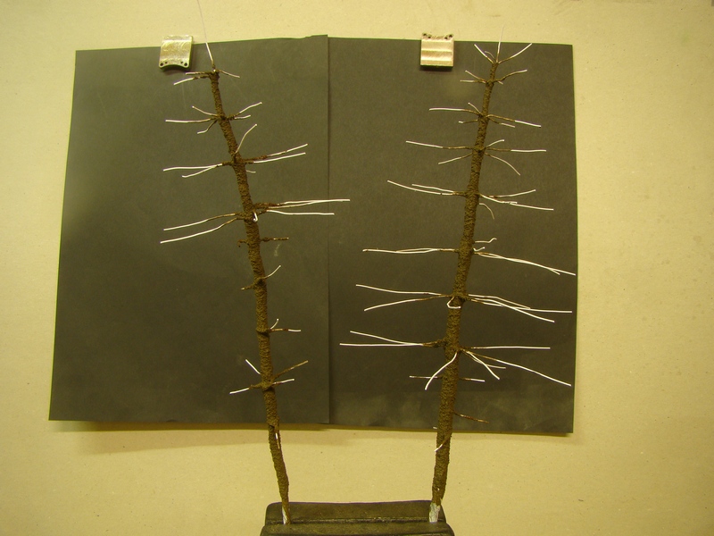 Proces je potřeba opakovat neboť napoprvé se kmen z drátu nezková. Jak zaschne druhá vrstva tak jsem lógr přetřel hnědou vodou ředitelnou barvou. Lógr se tím slepí ještě do sebe a neodpadává.