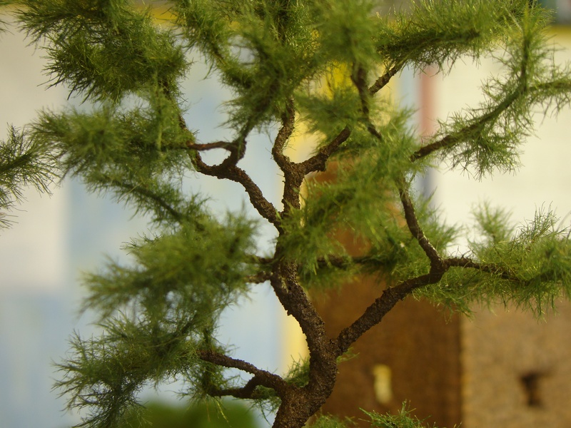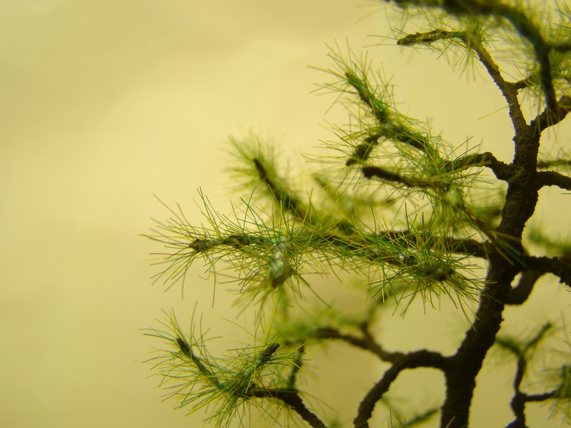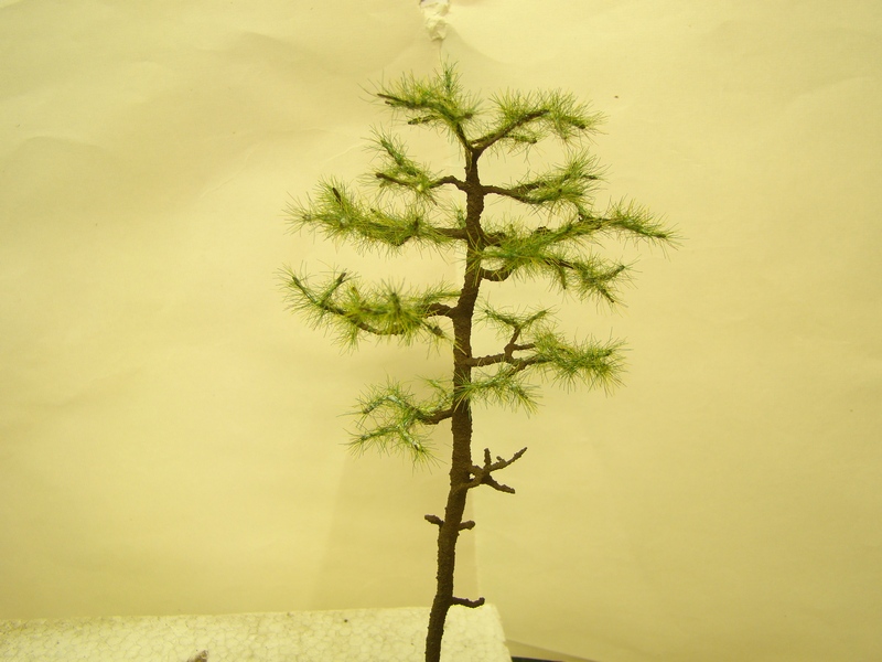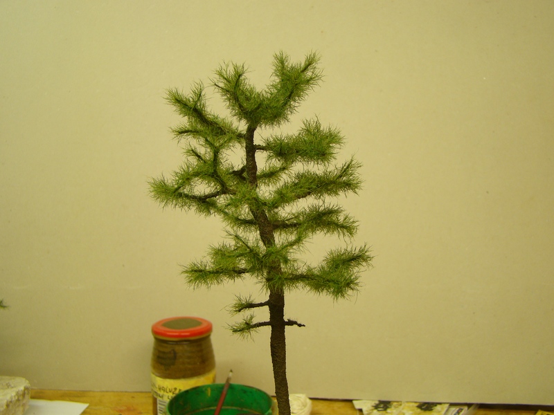 Konce větví po uschnutí lógru a barvy kterou lógr přetřu hustým duvilaxem a naflokuju. Snažím se natírat tak dvě max tři rozvětvení, rozhodně ne natírat až po kmen.