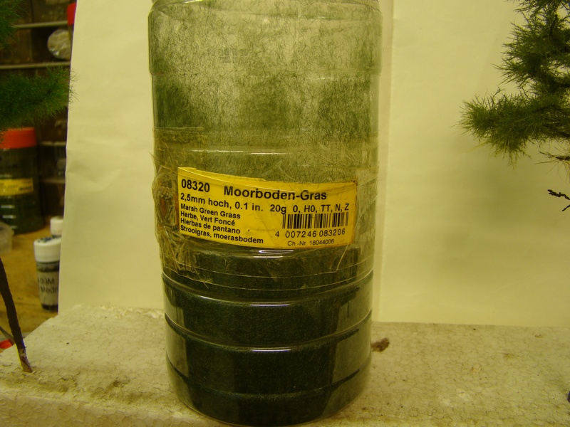 Po uschnutí prvního flokování nastříkám zaflokované konce ředěným sportarkylem 1:1 s vodou. Pokud možno nestříkat na kmen. Flokuji pak druhou vrstvu touto travou.