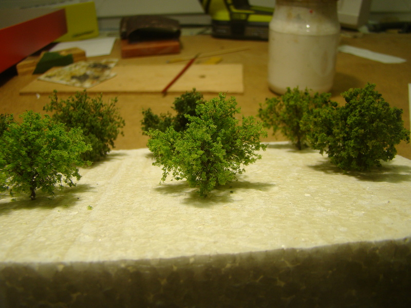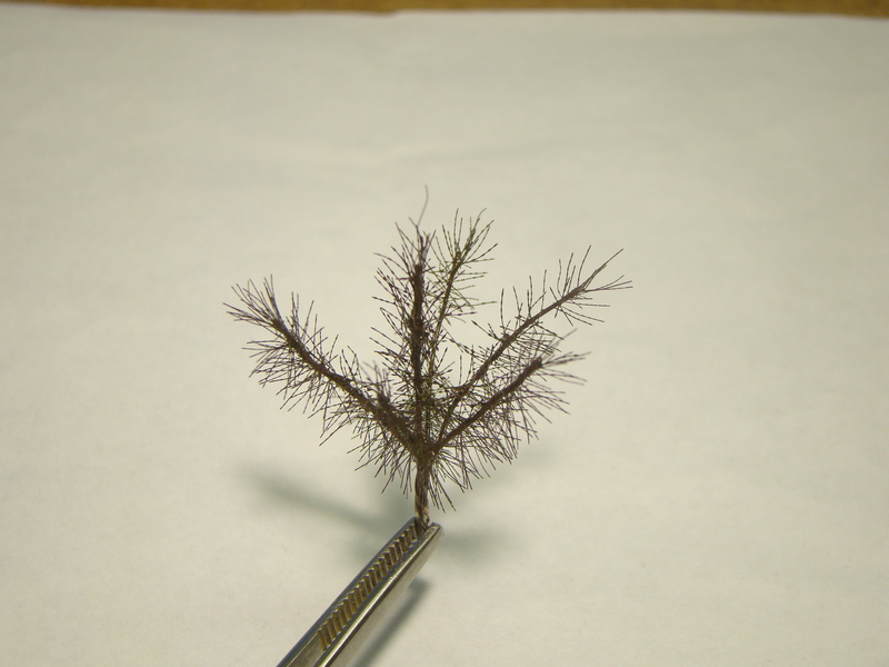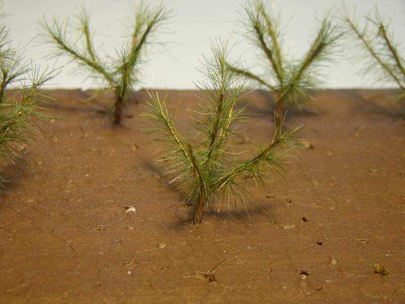 Jelikož nechci na modulu merlík ani vidět, tak jsem vyzkoušel udělat i nízké dřeviny pletené z drátu. Merlík je sice fajn, ale při přepravě modulů dostává zabrat a dlouho nevydrží neboť se poláme.