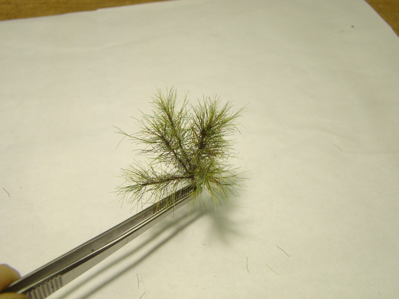 Vyzkoušel jsem i krátký flok délky 2mm, ale to se mě moc nelíbilo. Ne že by to nešlo použít vůbec, ale molitan a listoví vypadá podle mě líp.