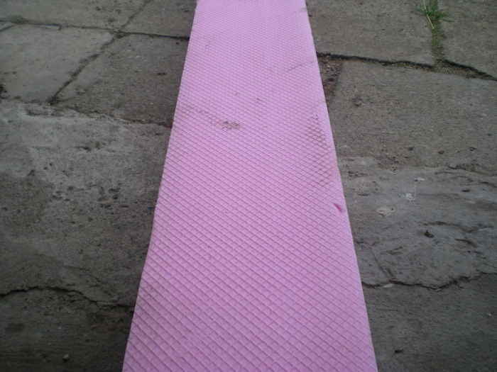 Materiál, který na stavby používáme, se jmenuje STYRODUR. Je to tvrzený fasadní polystyren. Dá se koupit ve stavebninách, případně vám je každý zedník, který někde dělá zateplení a vy jdete kolem, určitě ve zbytkách podaruje, protože by je stejně vyhodil. Takto vypadá třebas růžový styrodur. Je to jak jsem psal zbytek.