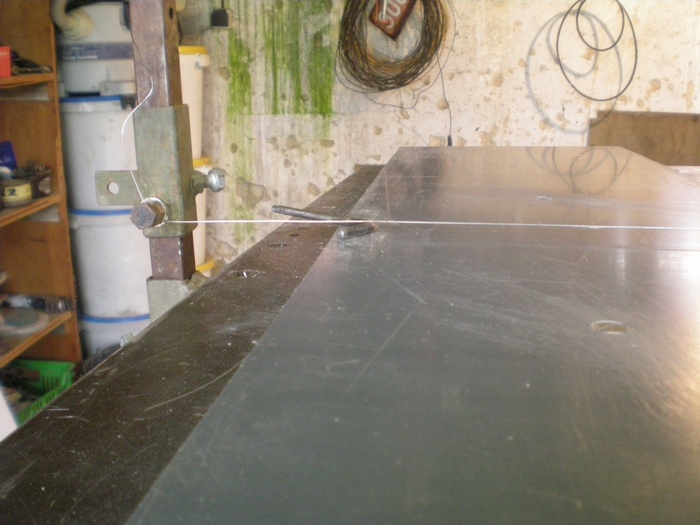 Tak a ted jen pustit proud a rezat. Jak jsem psal vyse, problemem je udrzet konstantni rychlost posuvu materialu. Kdyz spomalite, drat bude propalovat vetsi mezeru kdyz zrychlite mensi a tudiz budou v materialu ryhy. Jeste je vhodne met ten drat pokud mozno uchycen co nejblize k materialu jak jsem psal aby se nekroutil. Ja rezu rekneme 20-30cm materialu. Jako zdroj mam starou nabijecku na auto/motorku bez elektroniky. Kolega zkousel moderni nabijecku a ta mu hned vypne protoze si mysli ze je ve skratu. Drat je odporovy dle suplery prum:0,7. Kdo si co koupi to bude met. Cim tensi, tim asi nizsi napeti protoze by se prehrival a trhal. Ja jsem rezal na 6V.
