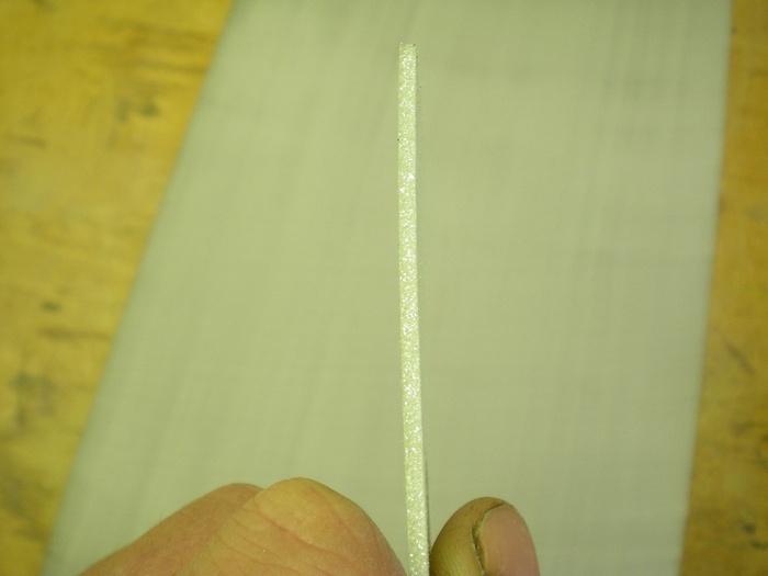 Styroduj je potreba osmirkovat. Dojde ke strzeni toho slepeneho povrchu a takovych tech "niti" po rezani. Zaroven se material srovna. Smirkovat nedoporucuju moc hrubym smirkem. Ja sem se dival a smirkoval jsem hrubosti 80 a 100. Zalezi co me slo pod ruku. Hrubejsi dela do materialu ryhy, jemnejsi se hodne zanasi a moc se mu smirkovat nechce. Jeste musim rici ze smirkuju smirkem na platne, papirovy jaksi doma nemam a utrhnu vhodny kus tak abych ho mel kolem plastoveho plocheho hranolu. Mam i kousek desky cca 10*8*2 cm. Proste tak aby se kostka dobre drzela v ruce. Smirek nijak nelepim jen omotam tak abych jej z boku mohl drzet. Potreba pohlidat aby necouhala nikde ta nit ze smirku protoze zas v styroduru udela ryhu. Po vysmirkovani: