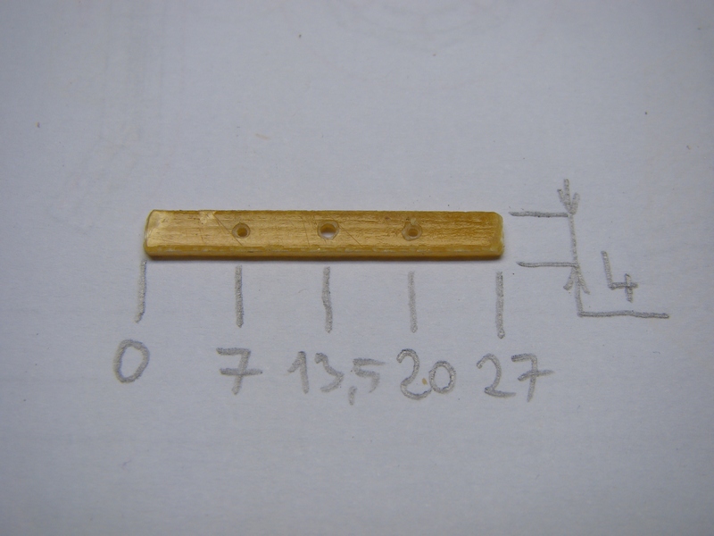 Tahlo kterym budu jazyky prestavovat. Je vyrobeno z sklolaminatu, 1mm silneho ktery kolega kdysi sehnal v praci. Podle me se bude dat koupit. Mozna pude pouzit i kuprexit z desky ploneho spoje jen bych z nej odstranil smirkem medenou vrstvu at jazyky nezkratuji. V tahle vyvrtejte otvory dle toho cim budete jazyk tahat a podle toho co mate naletovano na jazycich. Prostredni otvor se da klidne v budoucnu i zvetsit takze nehrotit.