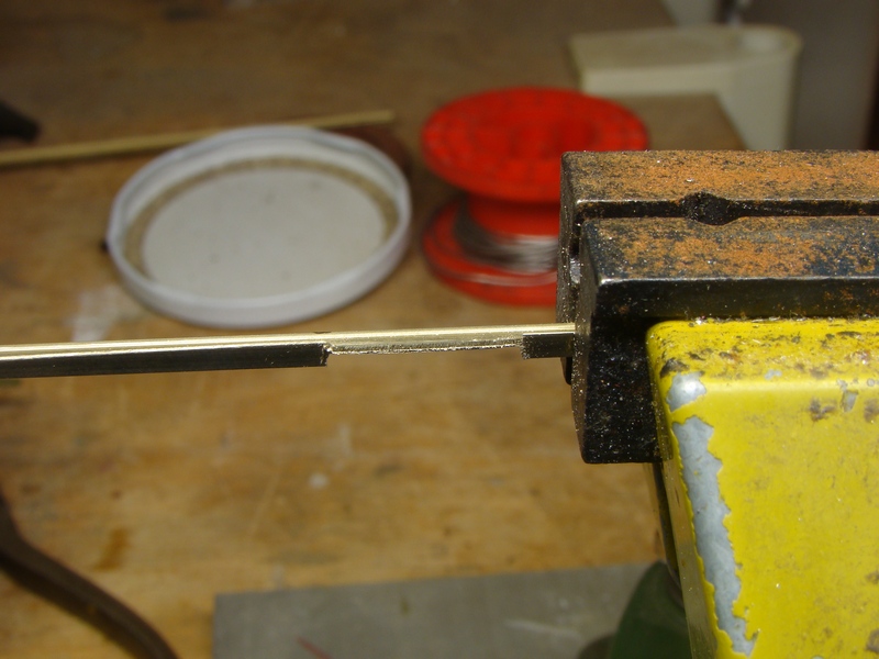 Zapilovat jazyky v miste oznaceni ctyr nebo trojuhelnikovym jehlovym pilnikem az po stojnu.