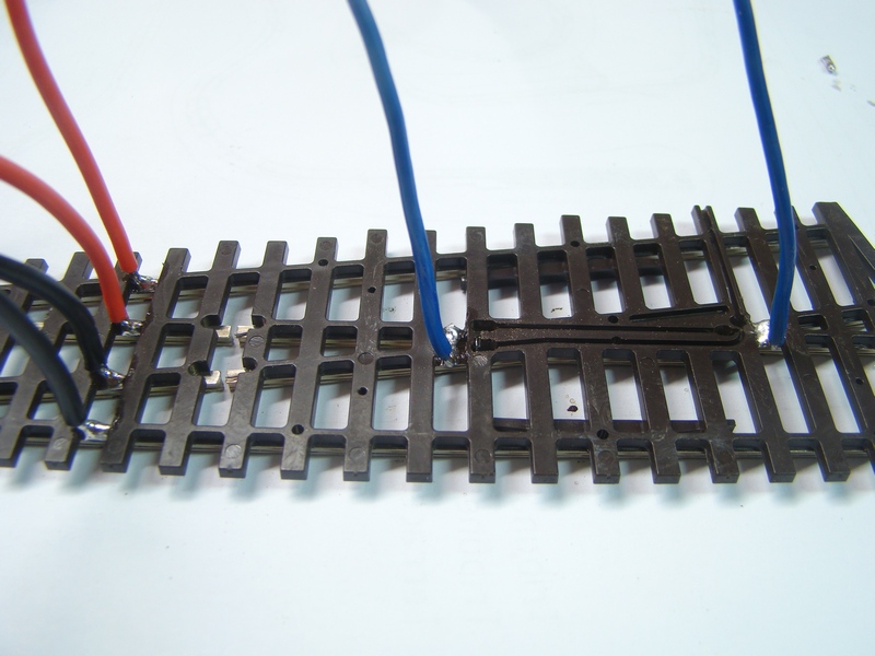 Místa pro přiletování drátů na pruty očistím pilníkem a pomocí kapaliny pocínuju. Naletuju pak do míst vodiče. Je opět vhodné mít vodiče nějak barevně odlišené aby se v tom pak při zapojování člověk vyznal. Já používám na rozvod černý a červený vodič a na přepínanou srdcovku modrý vodič.