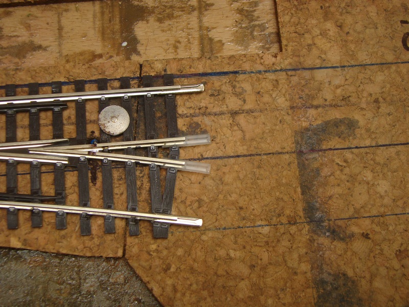 Po položení výhybky nasleduje její vyrovnání a zafixovaní připínačky. Jelikož nejsem počítač nýtů tak používám jak vodivé tak izolační spojky. Izolační spojky používám v místě napojení srdcovky na pokračující koleje. Je to z důvodu toho, že srdcovka má přepínanou polaritu podle polohy výhybky.