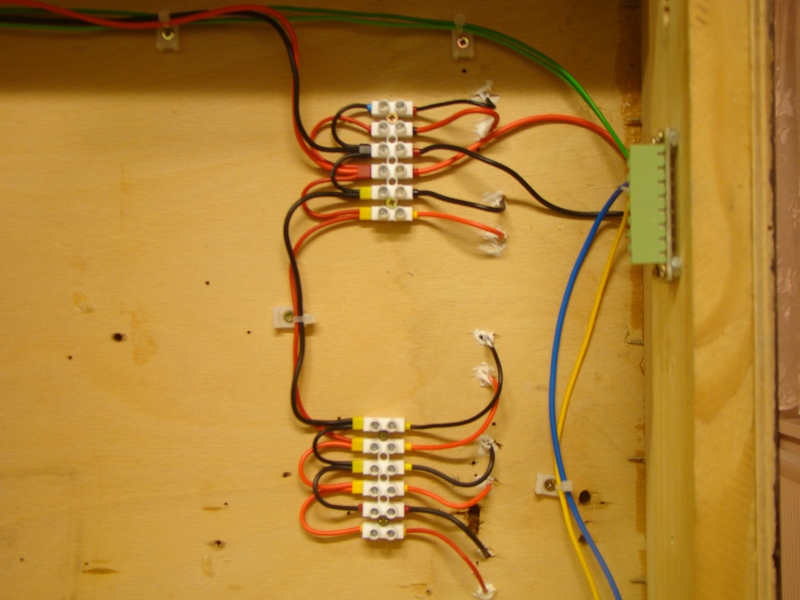 Na dráty aby se netřepily krimpuju kleštěma tzv. dutinky. Používám na to obyčejné kleštičky i když na to mají být speciální kleště. Dutinky se kupují dle průřezu vodiče. Ty podložky mám pod šrouby ve věnečích aby se dráty lépe utáhly a šrouby neměli snahu drát vytahovat při utahování ven.