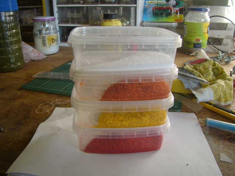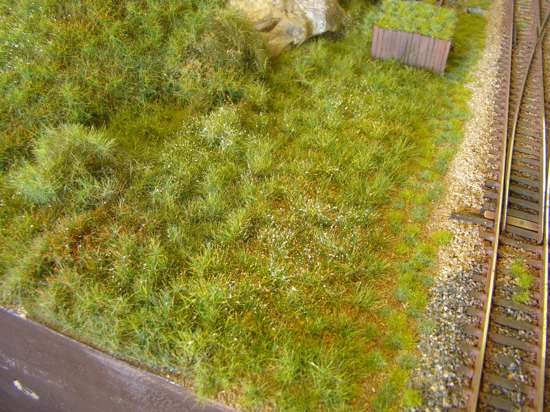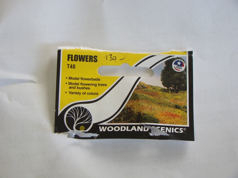 Místa kde jsem chtěl kytičky jsem nastříkal silně tužícím lakem na vlasy. Kytičky jsem z krabičky po barvách. V malém množství jsem je přesypal nad papírem do čajového síta a mírnými poklepy jsem cukroval na nastříkanou trávu. Opravdu mírně a jemně. I přes čajové síto kytičky propadávají dost rychle. Až jsem byl s narostenýma kytkama spokojen tak jsem vše opět zalakoval lakem na vlasy. Výsledek je dál na fotkách.