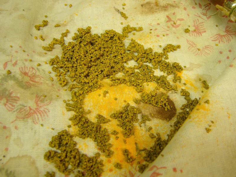Meruňky jsem musel natírat několikrát. Vždy po natření jsem je vysypal na hadr a ten smotal abych mohl meruňky sušit fénem. Při sušení jsem je promačkával a protřepával aby se jednotlivé zrníčka pokud možno nelepili.