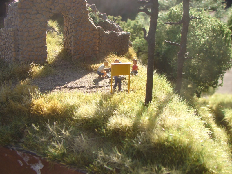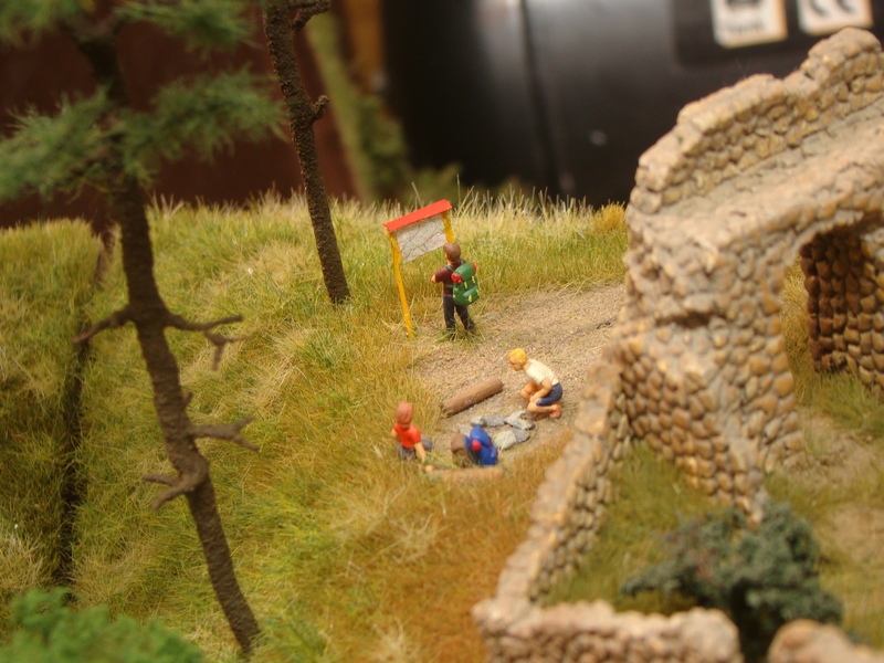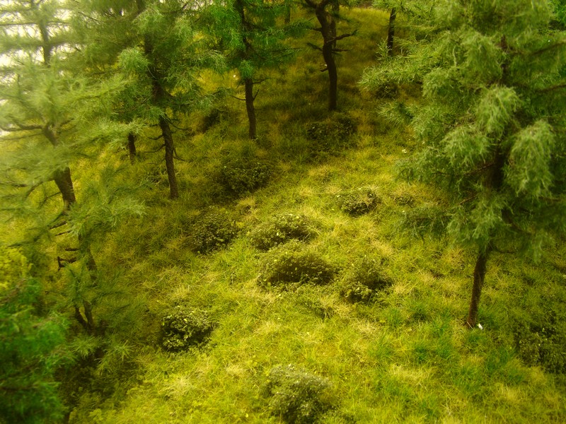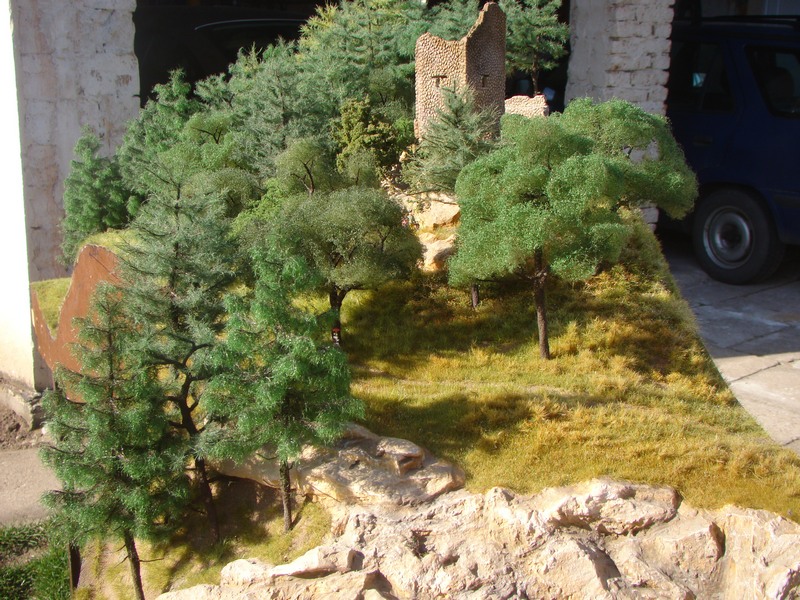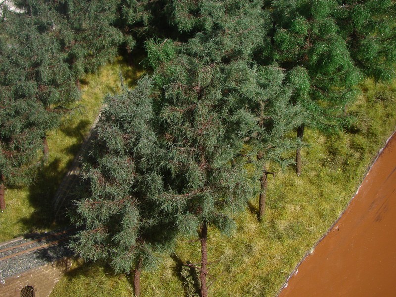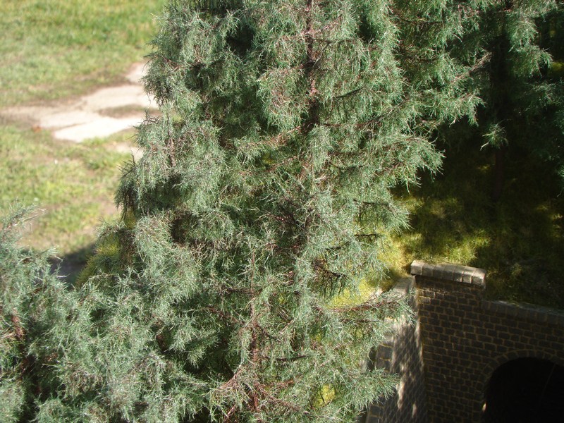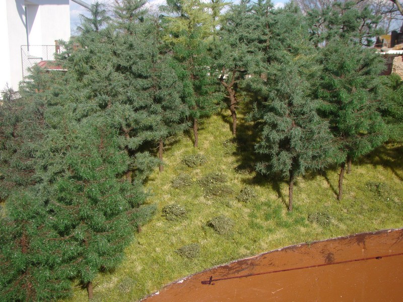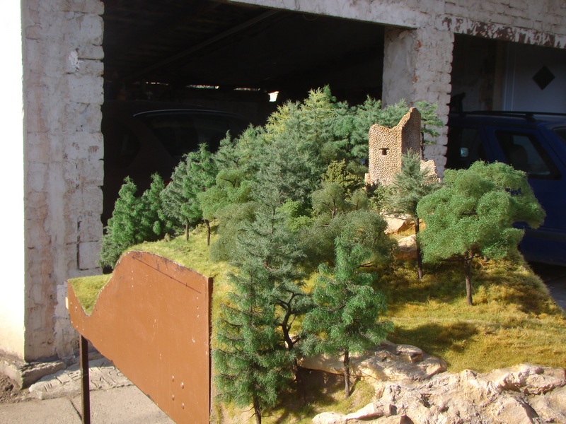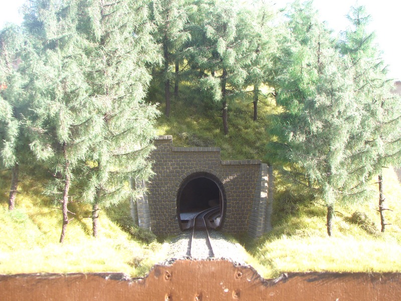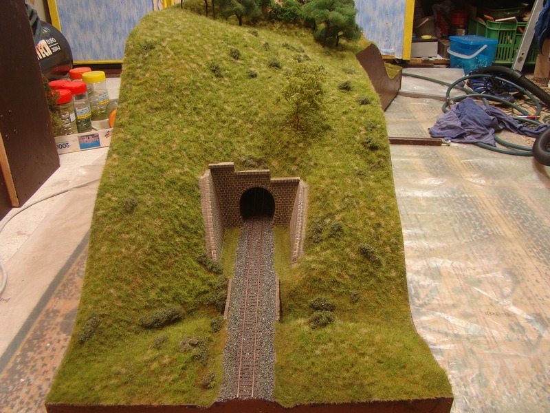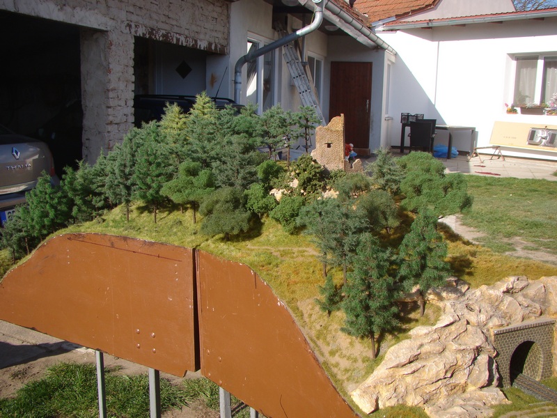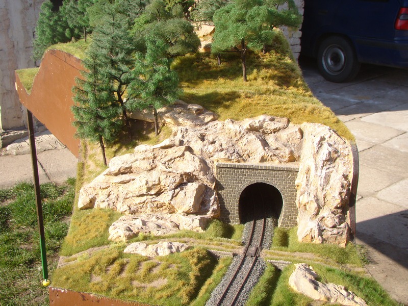 Když už jsem se dal do stromků, tak jsem je hned využil k opravě modulu tunelu s hradem Luňštejn. Díky tomu, že hrad s vrškem kopce byl na modulu jen položen a při převozu se stalo že hrad cestoval po modulu došlo k zničení stromků. Taky jsem časem došel na jiný systém flokování a tunel byl mým prvním modulem takže ho chtělo přeflokovat. Flokoval jsem různými travami stylem "drnování". Je to vlastně flokování do kapek lepidla. Dá se s tím vyhrát do zbláznění ale myslím že to vypadá lépe než flokování jednou travou plošně.