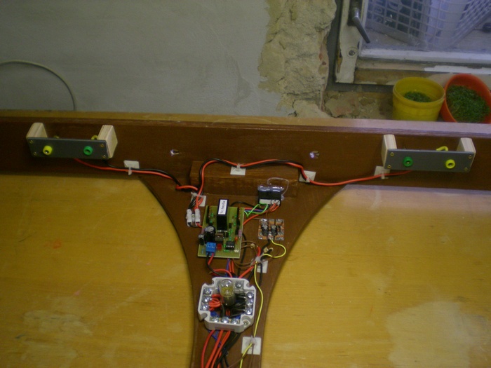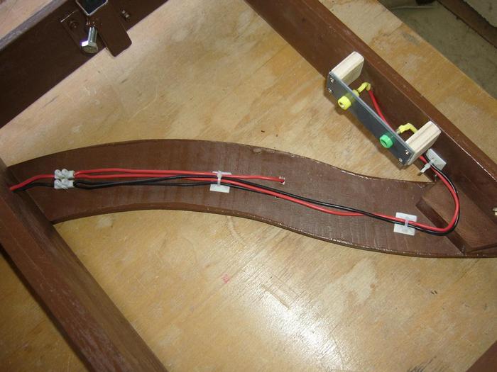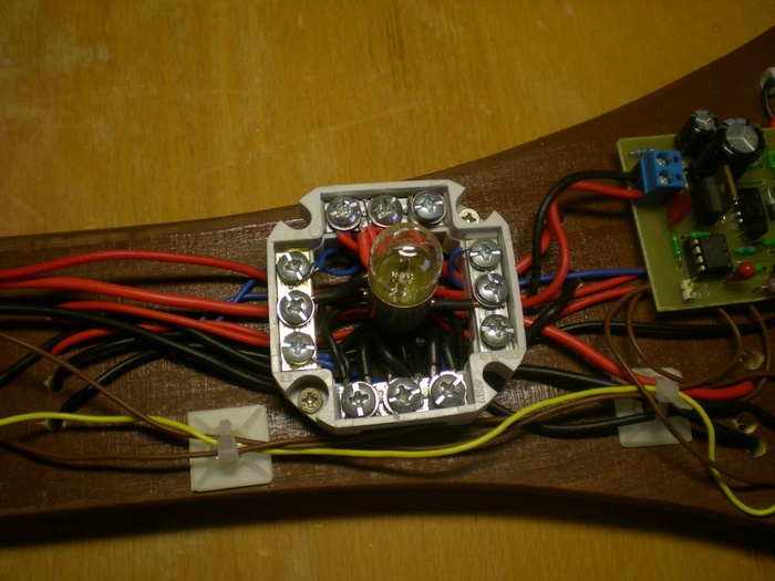 Dratky jsou na koncich pocinovane aby se nerozplantavali a pod sroubky jsou vlozene podlozky aby se dratky nevytahovali ven. Na fotce J a K jsou vrchni a spodni kontakty a ty bocni jsou - levy ctyri draty od srdcovky - pravy privodni drat od prepinani srdcovky. Mezi tim je zarovka 12v 5w. Ty spodni dratky na fotce hnede a zluty jsou prepinani prestaviku.