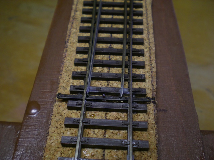 Vyhybka homemade slozena do kupovaneho podlozi tillig.