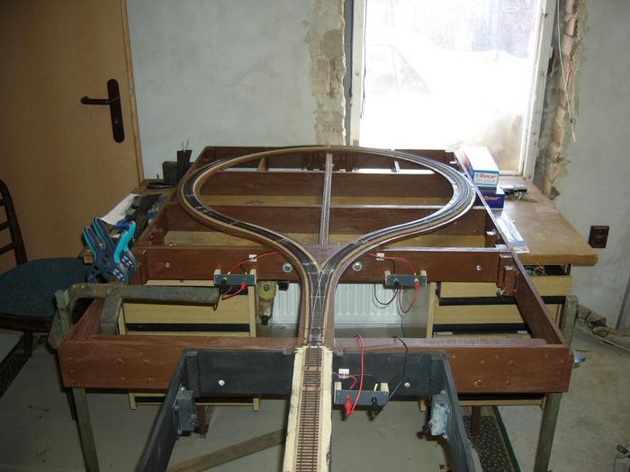 Tak vazeni pratele, pokracuju ve stavbe smycky. Doslo na polozeni koleji. Zacal jsem usazenim vyhybky na osu modulu. Potom jsem polozil koleje ze zadni strany z mista spojeni modulu. Co pak chybelo jsem domeril a dopokladal. PS: nedivte se ze fotky nejsou focene postupne, ale skokove. Bohuzel nemel jsem fotak, tak jsem fotil az prijeli kolegove.