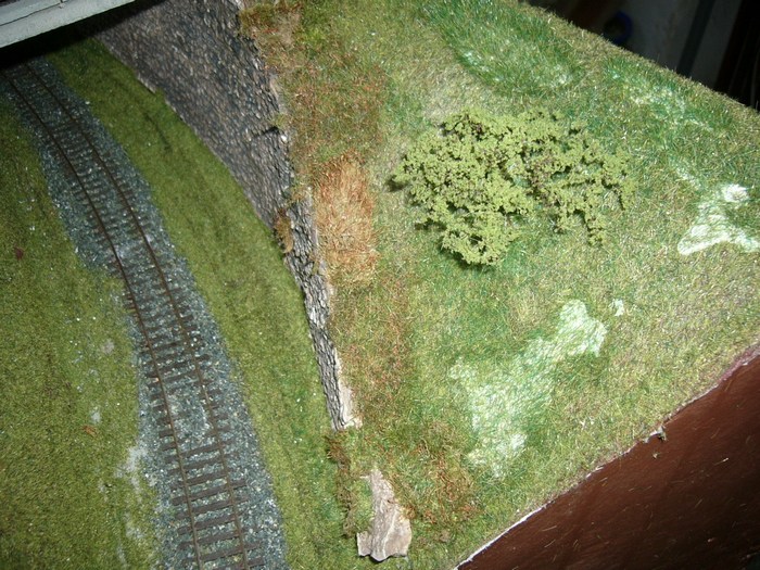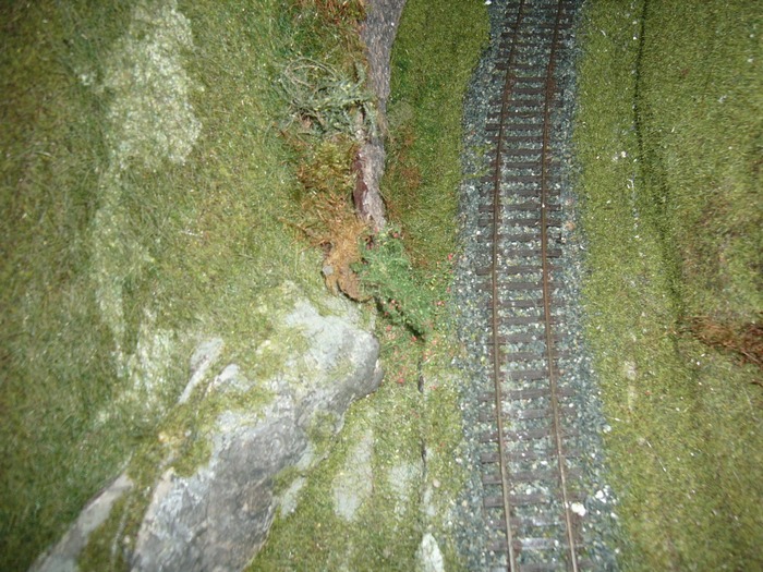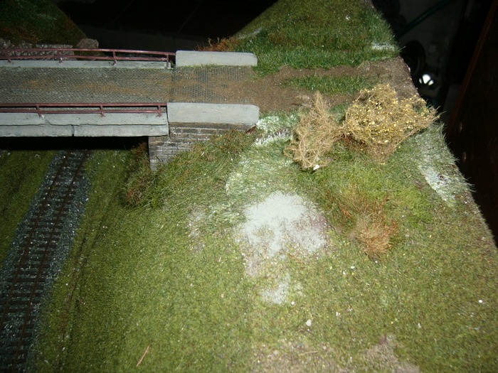 na výstavu v Hluku jsem měl moduly oblouku zasypané základem 2 mm vysokou statikou,dnes jsem se odhodlal to doflokovat,takže na porost je použita foliáž,suchý mech a statika Heki a Polák,fotky jsou čerstvé,není zaschlý duvilax.....