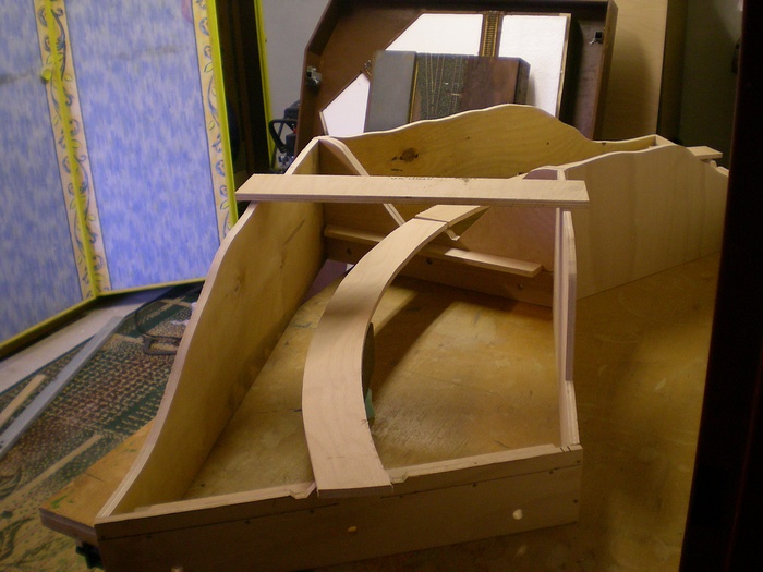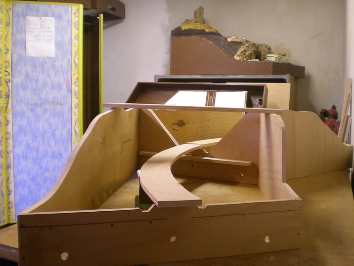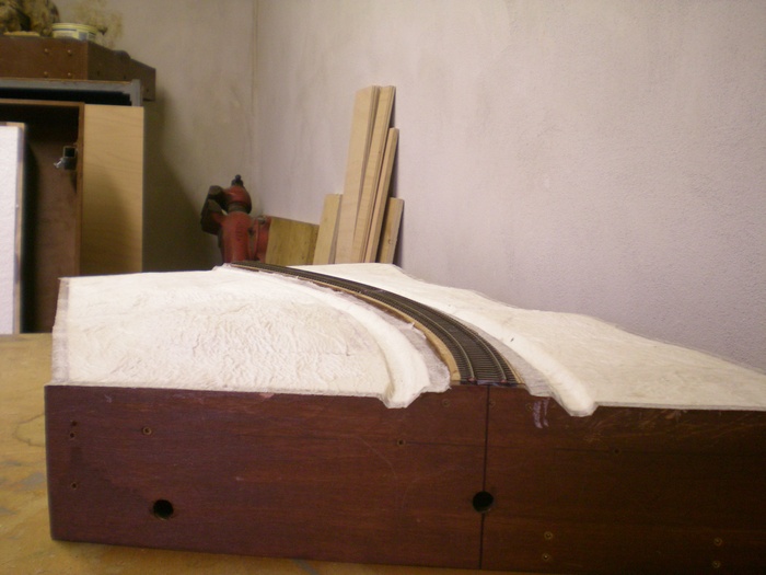 No a dalsim dilem oblouku jsou dva moduly, ktere reprezentuji trat v zarezu. V miste te horni desky bude silnicni most pres trat.