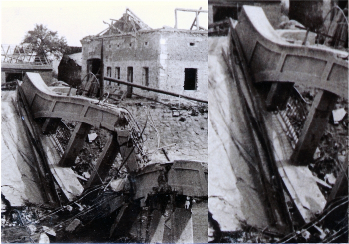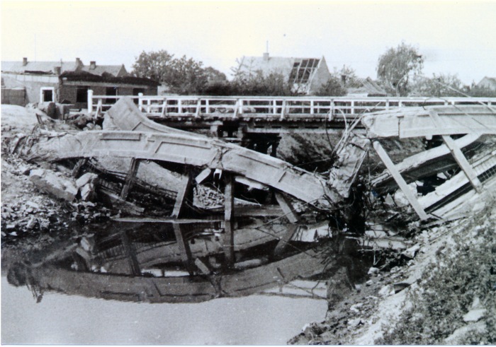 Existují fotografie z dubna 1945, kde je most již vyhozen do vzduchu ustupující německou armádou.