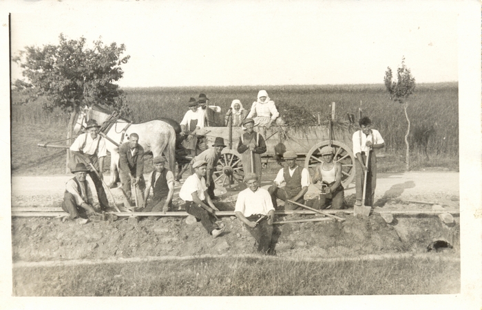 Přikládám ještě jednu fotku z opravy trati, tady dokonce neznám ani místo, kde byla fotografie pořízena, domnívám se, že byla pořízena v úseku od mostu přes řeku Olšavu směrem k nádraží ČSD, je pořízena v rovině a mimo zástavbu, osoby na fotografii mě nejsou známy