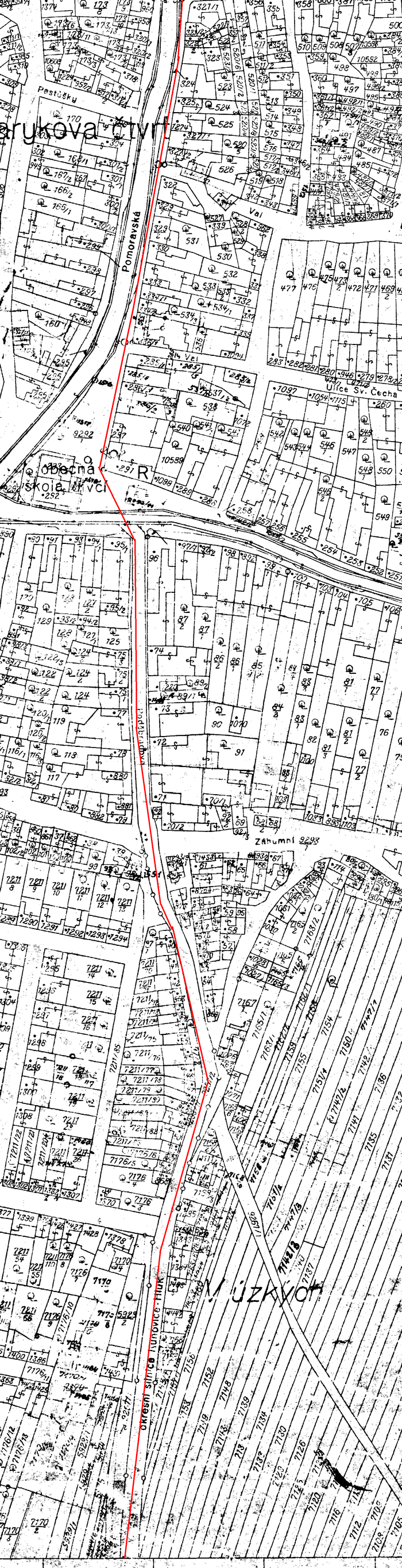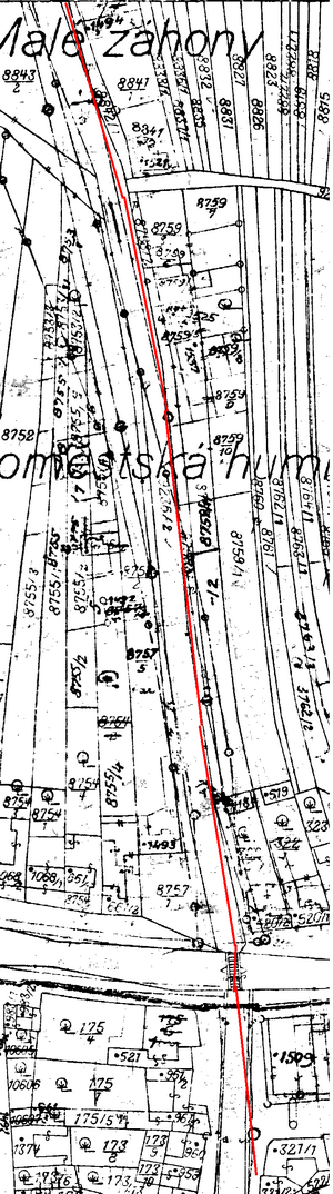 Vedení trati obcí přibližné, jakékoliv dokumenty k vedení drážky nemám, vycházím z komisionelního šetření a vzpomínek pamětníků.