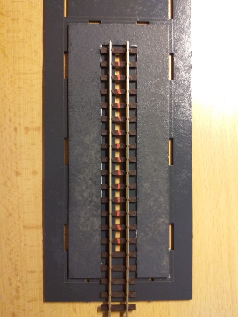 Přiložíme kolej Peco SL - 404, označíme pražce a tyto v příčném směru zkrátíme.