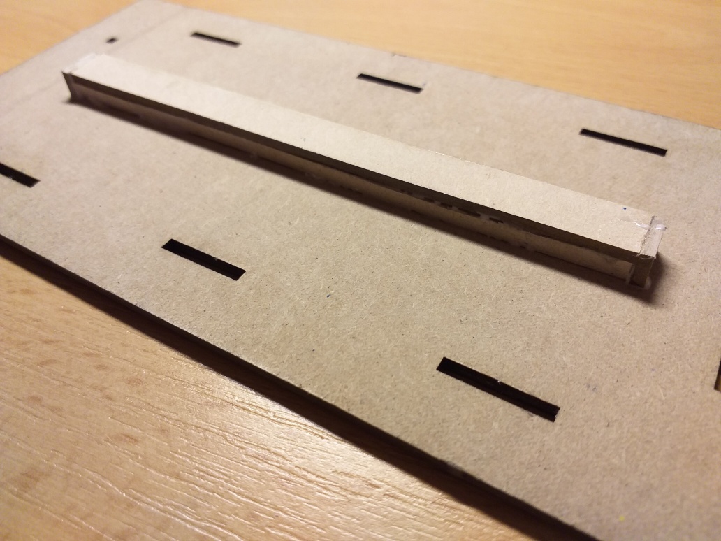 Jednotlivé díly vyřezávejte tenkým a velmi ostrým nožem (především díly podlahy, obvodových stěn, oken a krovů. Na základovou desku nalepíme vymezovací podlážku samotné výtopny. Při lepení pozor, aby v levém a pravém rohu nebyly zalepeny dírky o průměru 0,5 mm. Těmito otvory později protáhneme ocelové struny, které zajistí napájení pro led osvětlení.
