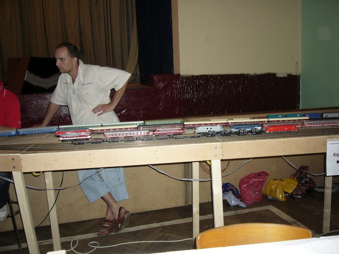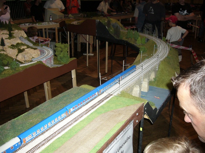 Nasi prvni akce kde se prezentovaly nase moduly, byla kazdorocni vystava modelove zeleznice poradana ku prilezitosti EVROPSKEHO DNE BEZ AUT. Akce se konala v mistni sokolovne. Bohuzel jsme se nezucastnili cele akce, ale slybujeme ze se polepsime a tento rok uz stravime v Luhacovicich vice casu. K vlastni vystave: Jezdilo se se vsim co melo kolecka, epocha a zeleznicni sprava se neresila. Jezdilo se pro oko divaka, protoze vystava je verejne pristupna. Motivem byla dvoukolejna trat s dvemi nadrazimi z nichz bylo jedno odbocne na jednokolejku. Takovym spestrenim byl funkcni podjezd pod dvoukolejkou, kterou podjizdela jednokolejka. Myslim ze zaryti modulari by mohli namitat nekolik NEMODULOVYCH zalezitosti (napr smycky), ale myslim ze nam ani divakum to nevadilo. A par fotecek z akce.