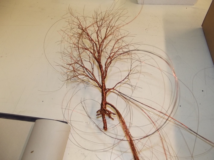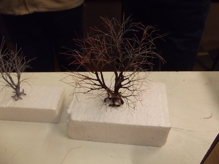 takže jsme se chopili drátu,odřezali izolaci a jali se plést stromy.Naše začátečnické chyby byly,že jsme se pořád snažili plést stromky co největší dle tady občíhnutých vzorů