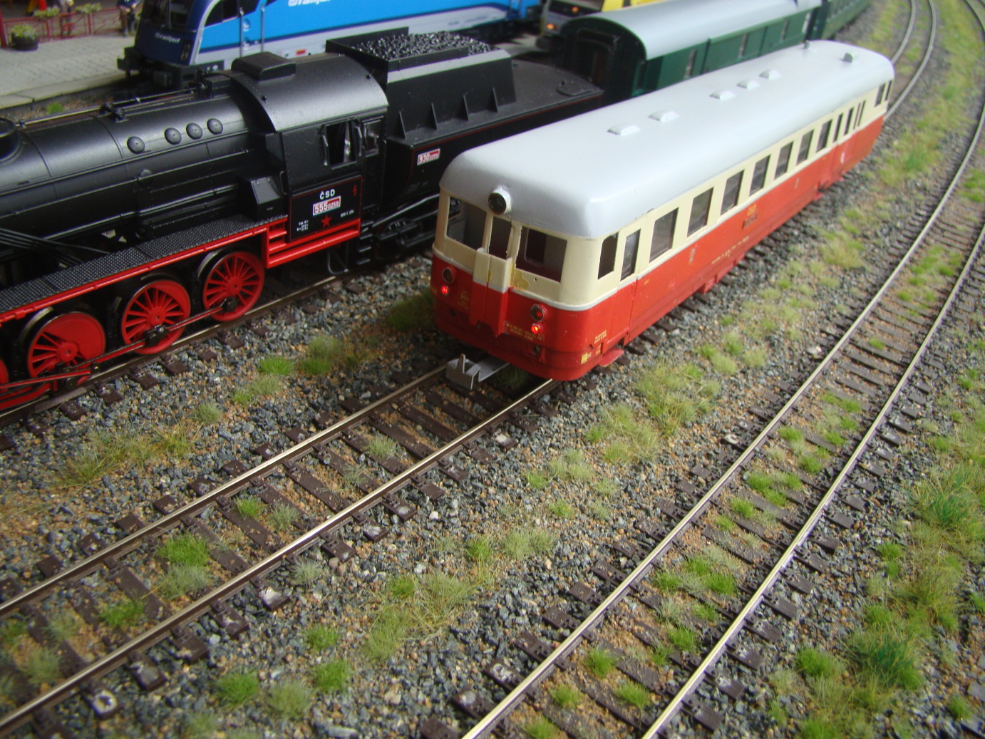Jak jsem psal výše, použili jsme jednokolejné moduly a k nim čtyři naše nádraží, Rokytno, Řáholec, Úzké hrdlo a Vizovice město. K Řáholci kolega MM2 připojil své budované depo pro provozní vyzkoušení