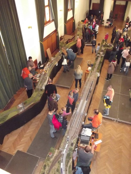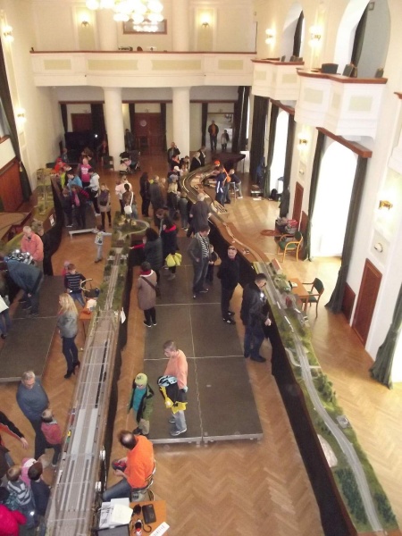 Výstava proběhla ve spolupráci s Klubem Kultury v Uherském Hradišti v krásných prostorách Reduty. Do layoutu jsme zařadili dvoukolejné nádraží našeho kolegy Jardy, z něj vedla dvoukolejná trať až do stanice Řáholec, jednokolejnou odbočkou přes stanici Vizovice město do stanice Rokytno. V Rokytně probíhalo školení nových strojvedoucích pod dohledem našich trpělivých kolegů. Musím podotknout, že občas i slzička ukápla.....
