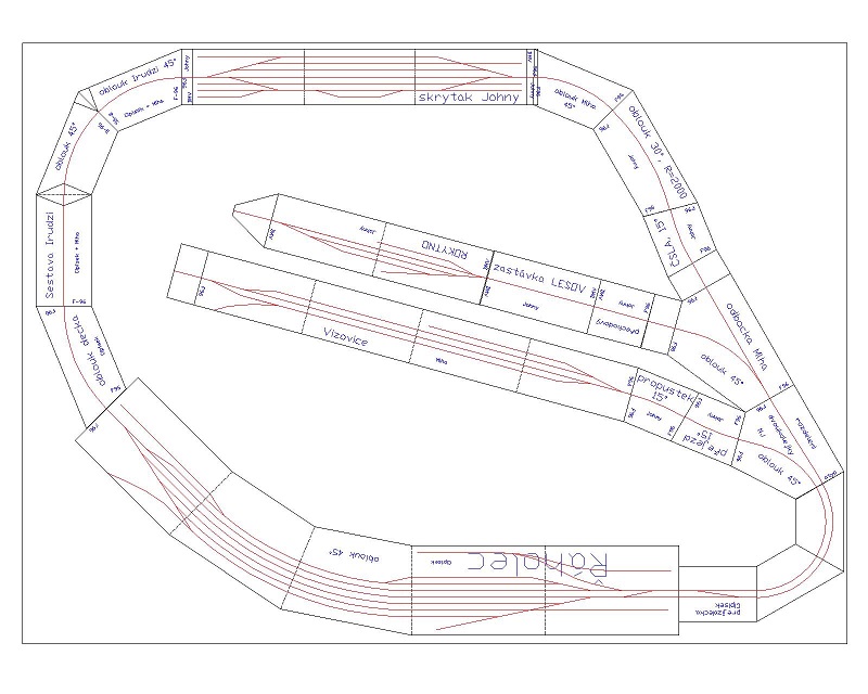 Tématem kolejiště byla hlavní jednokolejná trať Jih (skryté) - Řáholec – Sever (skryté). Z ní odbočovaly dvě vedlejší trati. Jedna přímo ze stanice Řáholec, druhá pak odbočkou z hlavní trati. Prostor pro vytvoření layoutu byl dán rozměry místnosti cca 5,4 x 7,4 m. Na tuto plochu se podařilo vměstnat celkem 4 nádraží a jednu zastávku: Vizovice město, Řáholec, Rokytno, skryté nádraží a zastávku Lesov. Hlavní trať byla uzavřena do okruhu a jedno skryté nádraží tak zastupovalo dvě skrytá nádraží – Jih a Sever. Důvodem byla možnost zařadit do grafikonu i dlouhé nákladní Pn vlaky a vlaky kategorie Ex. Jelikož uzavření nebylo možno provést pouze stávajícími moduly, byl přímo na místě Cipískem a Rumcajsem vyroben provizorní modul na míru. Provoz na hlavní trati a na odbočné trati do Vizovic byl řízen dle předpisu D2, odbočná trať do Rokytna byla řízena dle předpisu D3. Na této trati se nacházela zastávka Lesov.
