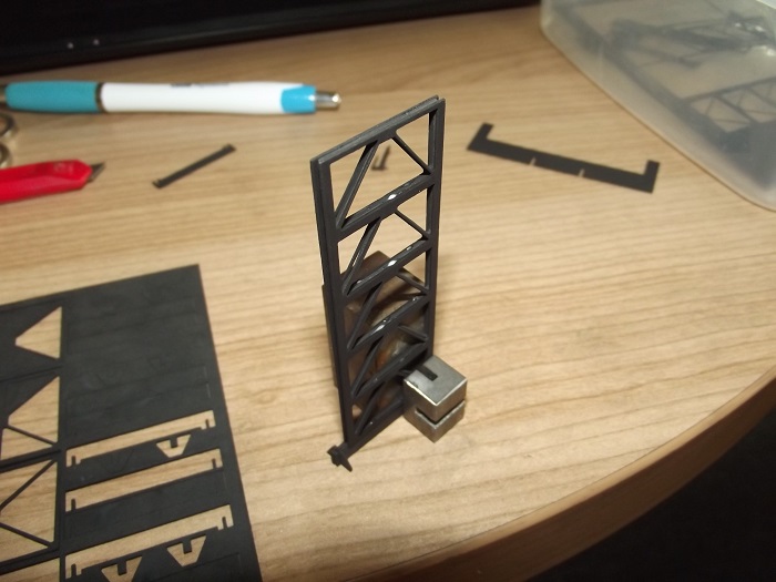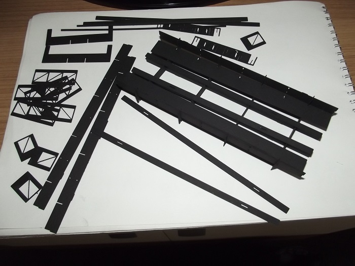 na dalším obrázku je konzola pro energovody, plánuji ji využít při stavbě kolejiště elektrárny. Tady bude potřeba hodně kusů, proto ji vypaluju z papíru. Dál bych chtěl ještě nakreslit jeřábovou dráhu pro vykládku konstrukcí, mám co dělat.
