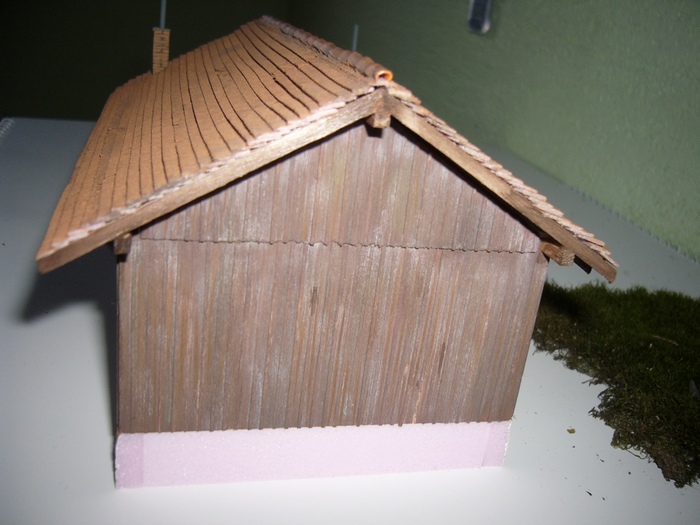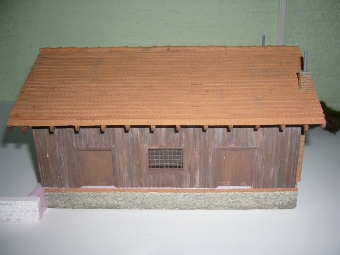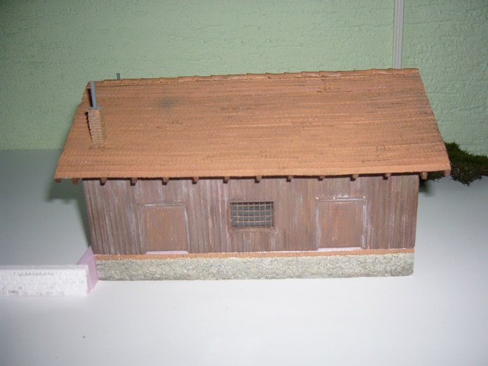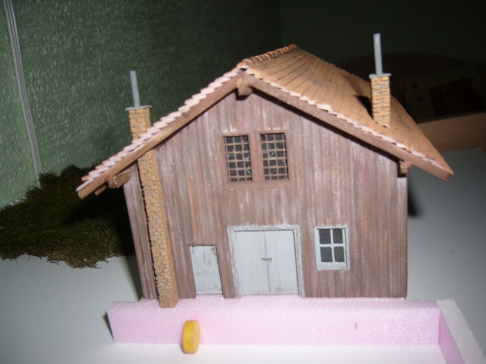 dnes jsem opět navštívil kolegu Broňka.Předvedl mě jeho novou stavbu na připravované nádraží Velké Broňkovice.Základ opět styrodur,samotná stavba je balza,oproti budově nádraží jsou na střeše použity pálené tašky.