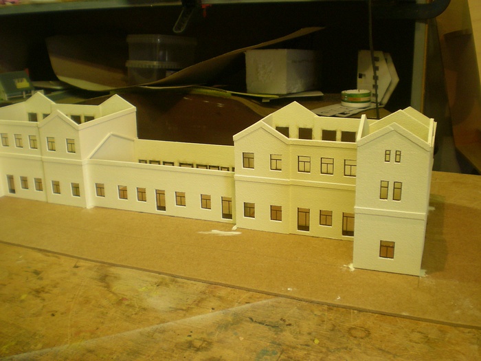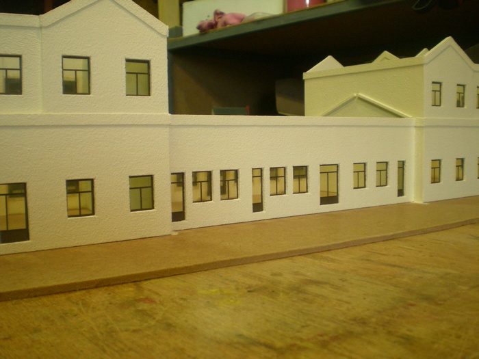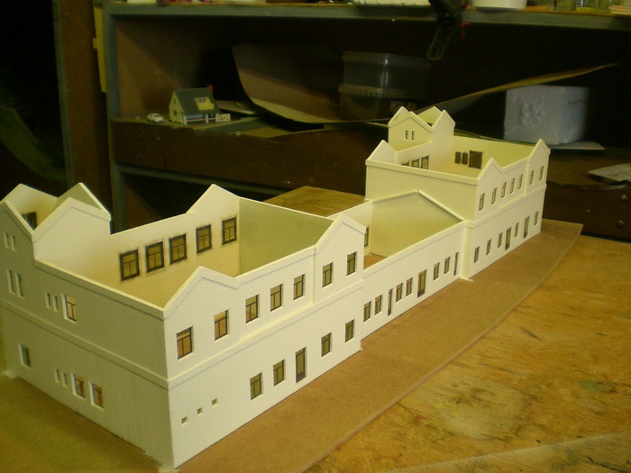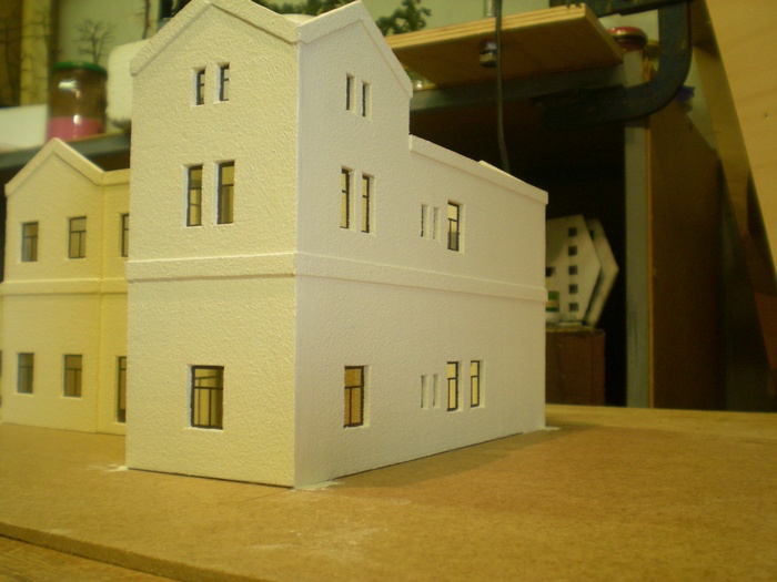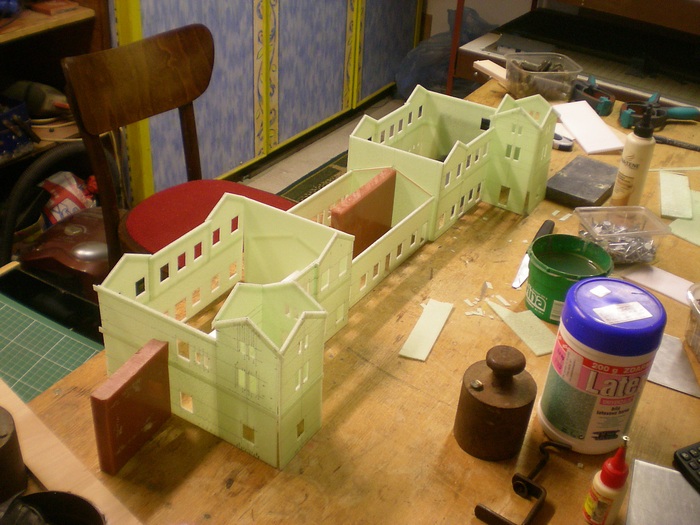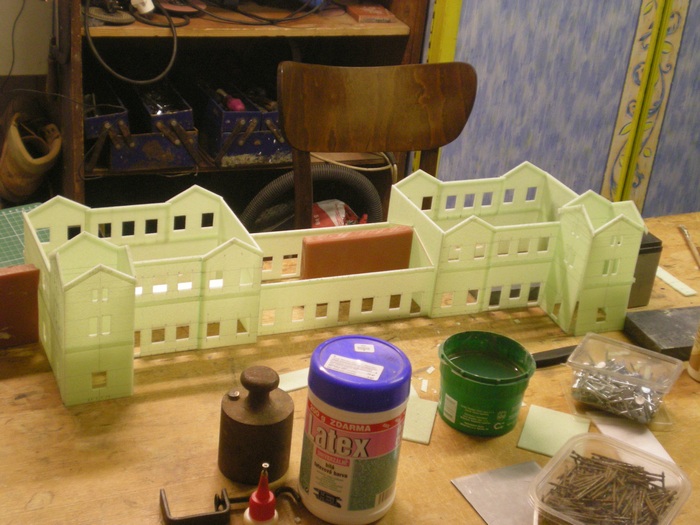 Jako vetsina budov stavenych v nasem klubu, ma i tato steny vyrobeny ze styroduru narezaneho na tenke platy. V tomto pripade 2,5mm.