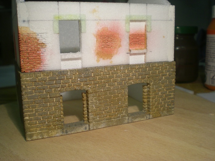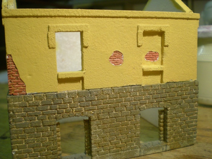 Mezery mezi cihlami jsem napustil opet hooooodne redenou okrovou temperou aby malta nebyla bila.