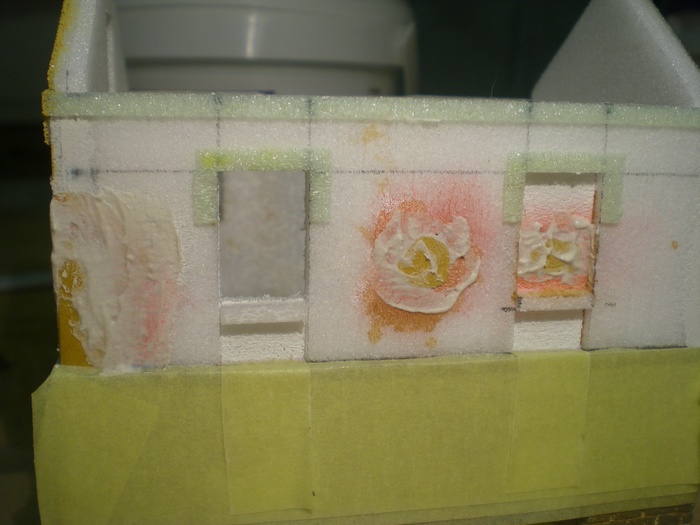 Tady uz jsem doplnil i zaclony do oken. Dole pod dvere dojdou dodelat betonove schudky.