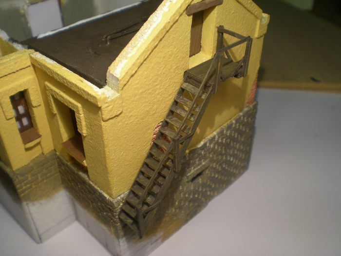 Dalsi akci bylo vyrobeni venkovniho schodiste na pudu. To je udelane z drevenych hranolku, dyhy a tvrdeho papiru.