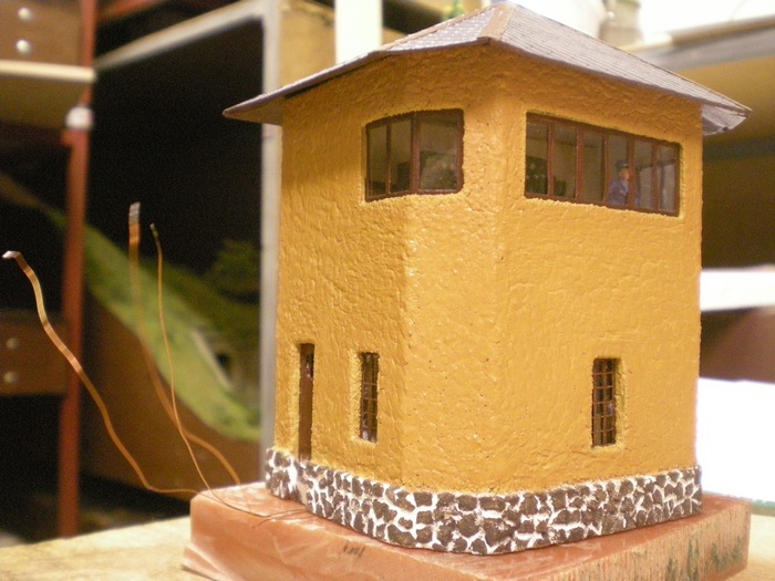 No a ted uz je stavedlo na miste. Neni jeste prilepene, ale bude tam kde je polozeno. Strecha je doplnena o kominek a kryci plechy prez hrany strechy. Jeste musim udelat okapy a svody. Urcite jste si vsimli ze omitka je nejaka popraskana. Je a sam nevim poradne co stim. Omitka je delana tak, ze papirova konstrukce je natrena hustym duvilaxem a posypana moukou. Po natreni barvou je videt jak to popraskalo. Minula stavba (spravni budova skladu uhli) je delana taky tak, ale tam jsem si toho nevsiml, protoze je natrena svetlou barvou a tak se to strati. Vsechny fotky ze stavby jsou ZDE. Kdyby nekoho napadlo co stim, tak dejte vedet. S pozdravem Cipisek.