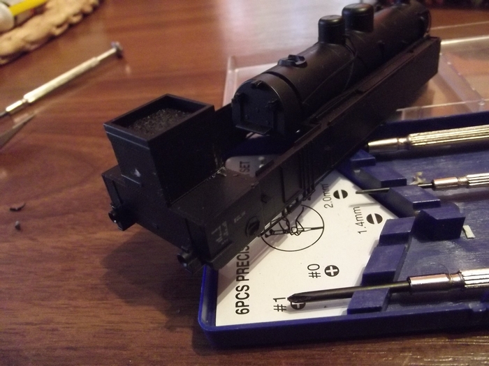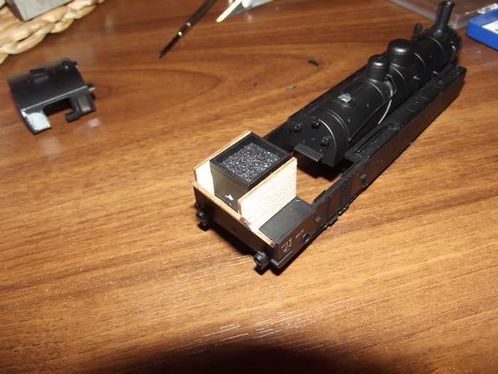 ještě se musím naučit pořádně fotit,ale u uhelné nástavby tendru je na pravé i levé straně výstuha,která nepůjde vidět a překáží v osazení dřevěné nástavby,proto pryč s ní