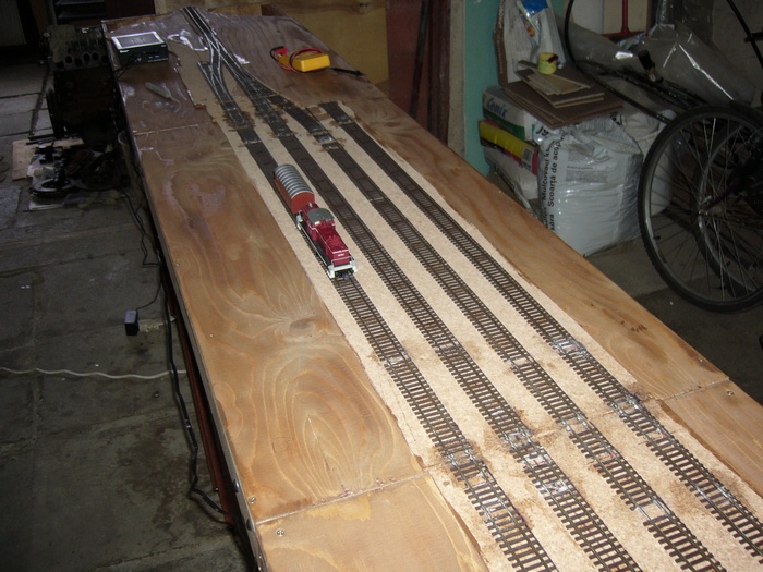 Dnes pod návratím(v průjezdu rodinného domku)složil všechny čtyři části nádraží.Světe div se,jezdí.Sice malé provozní mouchy jako jeden zkrat od srdcovky(malá izolační mezera),ale mašina se už proháněla.