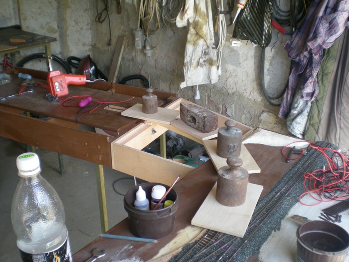 už dlouho nebyl na našem webu žádný nový příspěvek.Začalo někdy pěkné počasí,já jsem zateploval terasu a protože už pominula krize tak v práci skoro spím.Ale nezoufejte,začali jsme s cipísem na novém projektu a to vlečka Jelinek.Je to čistá a úplná fikce,zbyly dva rovné moduly a tak pro zpestření provozu ve Vizovicích stavíme vlečkový miniareálek.Tři vexle,dvě koleje a jedna odstavná pro rosničku,která bude posun zajišťovat(rosnička se bude teprve rodit).Zatím jsme spáchali přechodový modulek mezi nádražím a vlečkou,má poloměr oblouku 450 mm,pro posun to stačí a šlechtična neposunuje.takže přidávám fotečky hrubé stavby,poslední fotka je rozpracovaný odbočný modul,ten se rodí taky při chvilkách.