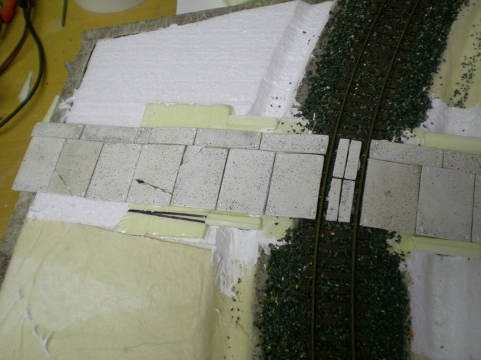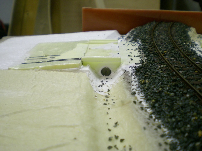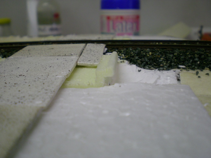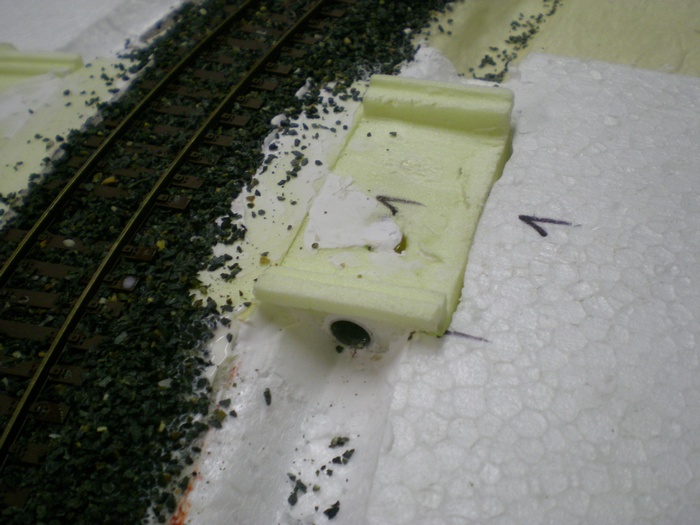 Tak dnes doslo na stavbu propustku kolem trati. Materialem je styrodur ktery sem vyrezaval nozikem do patricneho tvaru. Pak sem ockem a trafopajkou ktere sem vytvaroval do patricneho tvaru vyrezal tvar U ze spodu tech propustku a do nej zalepil hlinikove trubicky.