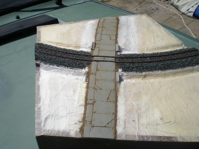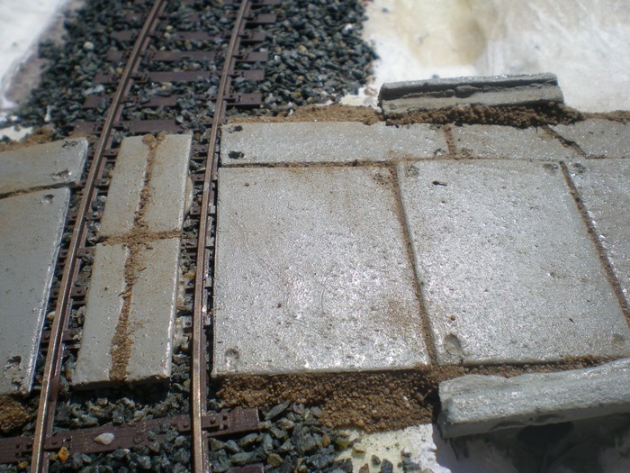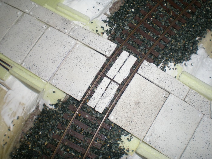 No posledni casti byla pokladka panelu mezi kolejemi. Radej jsem udelal vetsi mezery mezi kolejemi a panely uprostred. Neminim pak resit ze neco neprojede. Sice to nebude asi priliz modelove, ale jistota je jistota. Prozatim vse.