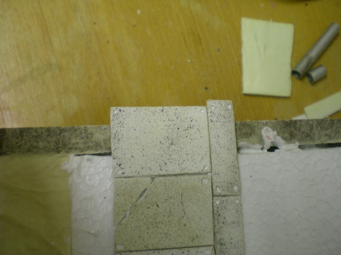 Trubicky jsem zalepil a diry po rezani ve styroduru tmelil timhle: