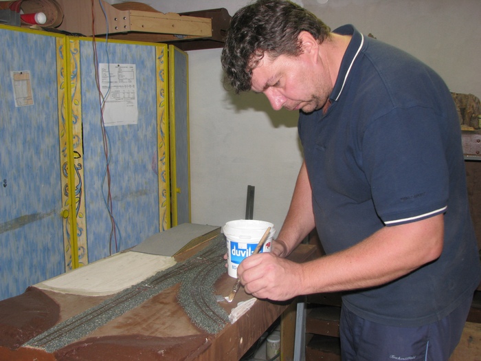 tady natírám místa kde nasypu písek