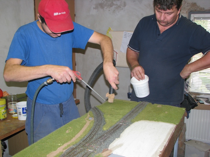 ahoj kolegové,Luhačovice se nám blíží hodně rychle,zkoušíme dotáhnout co jenom jde.Tak doděláváme všechno co má šanci být hotové.Dokončili jsme flokování Vizovic,takže máme zeleno hnědo,zbývá už jenom vydláždit kolem nádražní budovy,opravit cesty a snad udělat skládku uhlí...